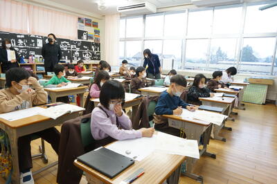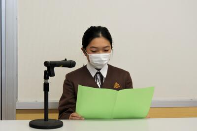 寒さと感染予防により、テレビ放送で行った第3学期始業式では、新しい年のはじめにあたり、今年の目標を