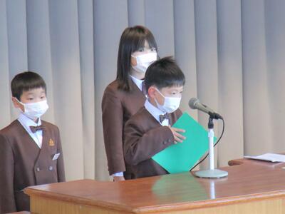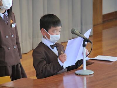 続いて、児童代表1年生、4年生、6年生より「冬休みの思い出や新年・第3学期に頑張ること」の発表が
