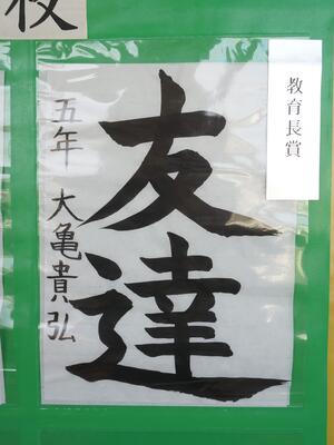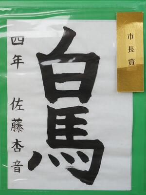 <書 の 部> 市長賞・・・4年生「白馬」 教育長賞・・・5年生「友達」