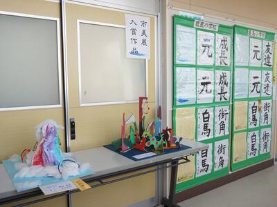 多くの作品の中から、4作品が入賞しましたので、校長室前に展示しました。
