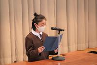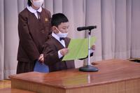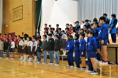 校長あいさつでは、第2学期に多くの学習や行事等に取り組み、一人一人が心(頭)も体も成長したこと。