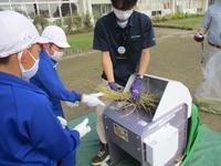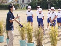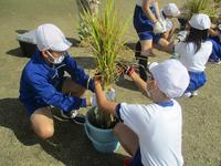 13日(火)に、JAの方に教えていただきながら、5年生が5月に苗植えをした「バケツ稲」の