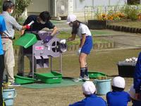 次に、足踏み脱穀機を使って脱穀し、唐箕にかけもみとゴミに分ける活動をしました。