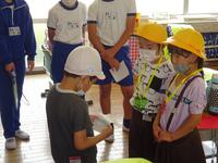 練習の後に全体会を行い、学校での行動の仕方や「いかのおすし」について確認をし、