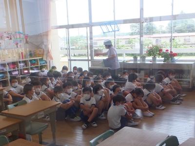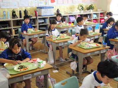 本日(24日)の給食のときに放送で紹介し、全校生でおいしくいただきました。