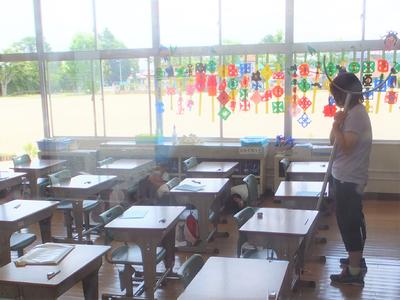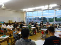 清掃の班ごとに全校生が35のグループになり、各教室や体育館に分かれました。