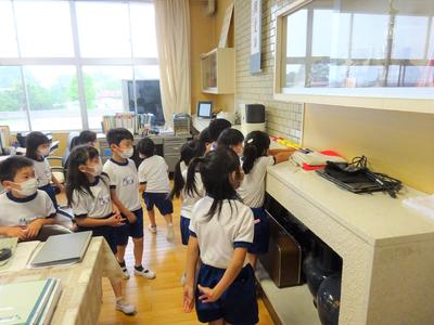 1年生は生活科で「がっこうだいすき(学校探検)」をしています。