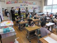 本日、原町ロータリークラブの伊藤博人 様、前田修清 様より、新1年生65名に