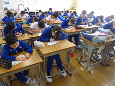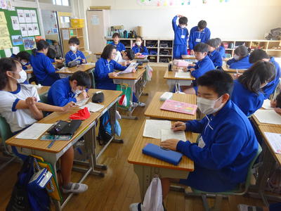 6年生の教室では、卒業文集の原稿作成の追い込みに入っていました。