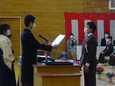 新型コロナウイルスの感染拡大の影響を受けて出席者が限定されましたが、無事に卒業証書授与式を挙行することができました。