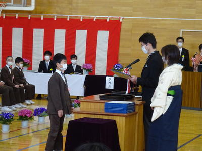 5年生の代表児童に修了証書が授与されました。