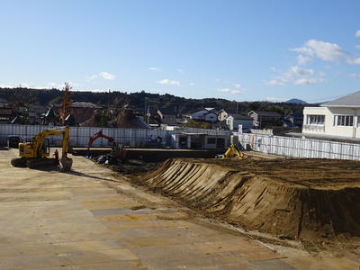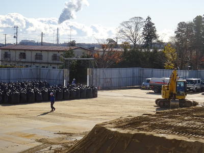 ショベルカーが3台ほど常時動いていて、掘り出した土を黒い袋に詰めています。