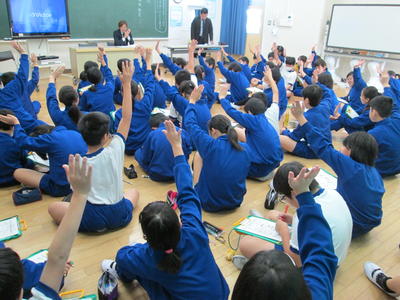 初めのうちは「税金はない方がいい。」と思っていた児童達も、「税のない世界」では、消防署も警察署も民営化され、消火や人・物探し、パトロールでさえも個人で支払いをしなければならなくなるなどの仮想現実に、「税のある世界」の方がよいに全員挙手で応えていました。