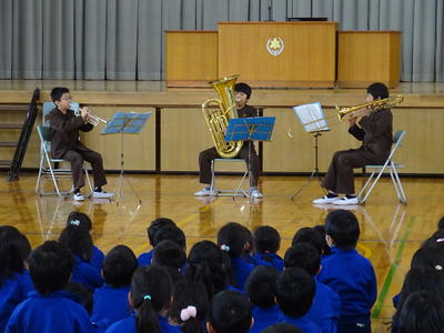 本校の吹奏楽部からは、金管三重奏、金管四重奏、打楽器三重奏の3編成が出場します。