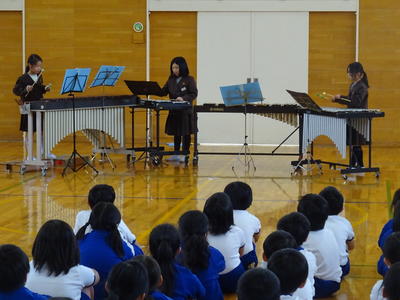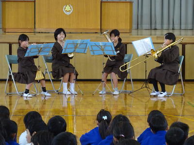今日の全校集会では、大会で演奏する曲を全校生に披露しました。