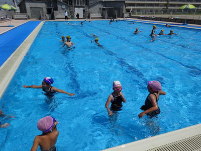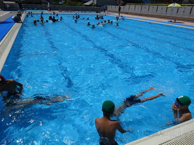 今日の午前中は、40名程の子どもたちがプールに来て楽しい時間を過ごしました。