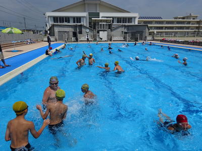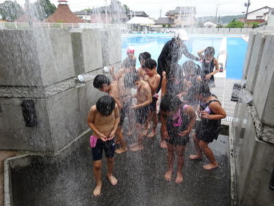 午前中のプール開放には60名ほどの子どもたちがやって来て、水しぶきを上げていました。