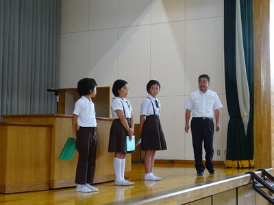 また、代表児童3名から、夏休みの反省や2学期の目標などの発表がありました。
