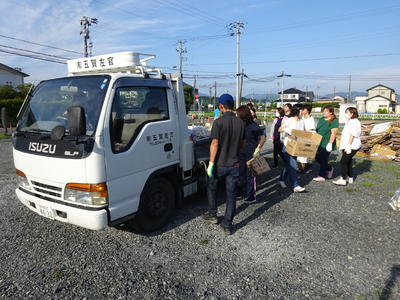 方部委員の皆さんには、自分たちの地区内のご家庭から出された資源を学校に運んでいただきました。