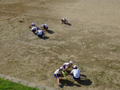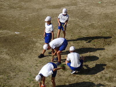 夏休み中の1か月もの間、校庭を使う人がほとんどいなかったので、結構草が伸びています。