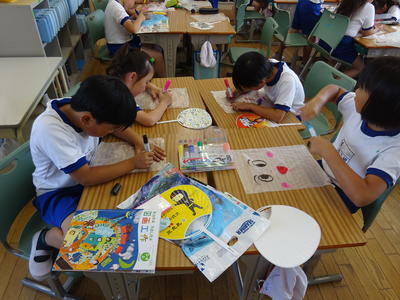 これは、ビニール袋などに思い思いの絵を描いて、それをうちわなどで下からあおぎながら、空中をふわふわ浮かばせる活動を楽しむ授業です。