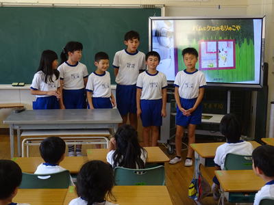 低学年にも分かりやすいように、それぞれの教室では「バムとケロのもりのこや」「せつぶんのひのおにいっか」「アレクサンダーとぜんまいねずみ」「フレデリック」などの本が準備され、図書委員会の皆さんが読み聞かせてくれました。