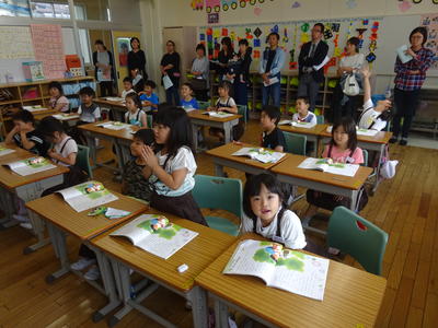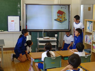 今日の昼休みには、図書委員会の皆さんが中心となって、1・2年生とわかあゆ学級で読み聞かせ会を開きました。