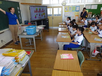 授業の間にはゲームがあったりジェスチャーがあったりして、楽しく活動していました。