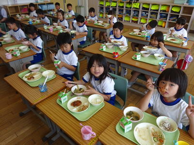 このセンターでは、鹿島区内の4つの幼稚園、小・中学校の約1,000人分の給食を、11人の調理員さんが毎日作っているそうです。