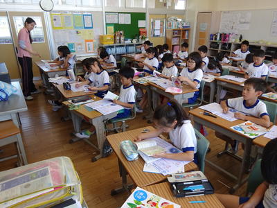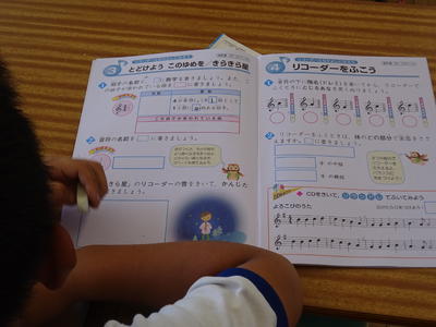 3年生の教室に行ってみると、音楽の授業で音符や記号の学習をしていました。