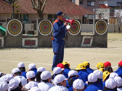 南相馬消防署鹿島分署から4名の方にお越しいただき、避難訓練を行いました。
