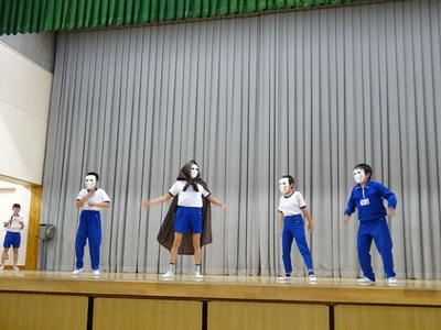 集会委員会や6年生の皆さんが中心になって計画や準備を行い、今日、全校生で1年生を迎える会を開きました。