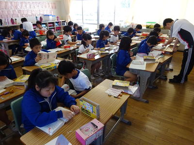 入学して2週間の1年生は、ひらがなの練習をしました。