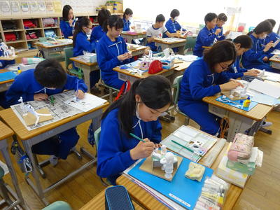 6年生の教室に行ってみると、図工の時間に「12年後のわたし」という題材に取り組んでいました。