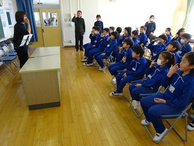 手話サークル耳通口(みみずく)の皆さんにお越しいただき、4年生を対象に手話教室を開きました。