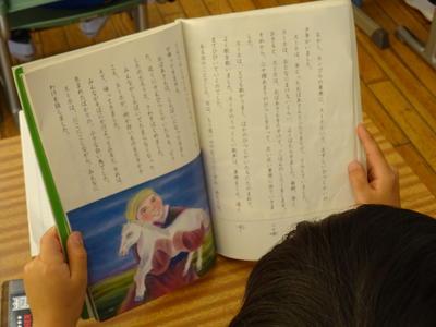 2年生の教室に行ってみると、国語の時間に「スーホの白い馬」を学習していました。