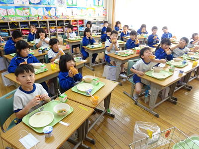 しかし本校では、今日の給食が1月にインフルエンザで学級閉鎖になった学級の給食実施調整日と重なったため、このチョコプリンを食べられたのは全学級ではありませんでした。