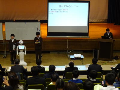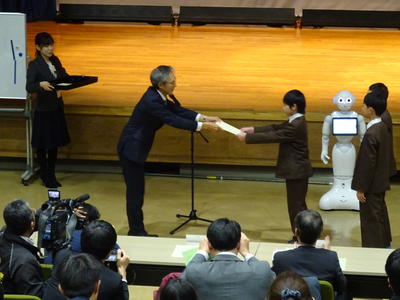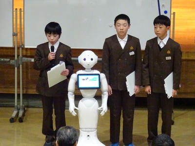3人はペッパーを利用して、相双地域の観光や文化・伝統などの紹介をプログラミングし発表しました。