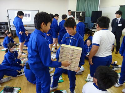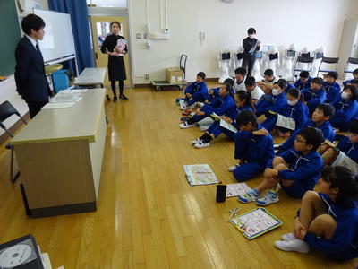 6年生は社会科の時間に税金の学習をしていますが、今日は市役所税務課の小守さんと佐藤さんにお越しいただき、租税教室を行いました。