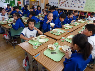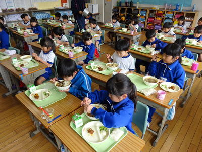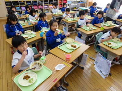 ちょっぴり辛いスープでしたが、子どもたちはおいしそうにもりもり食べていました。
