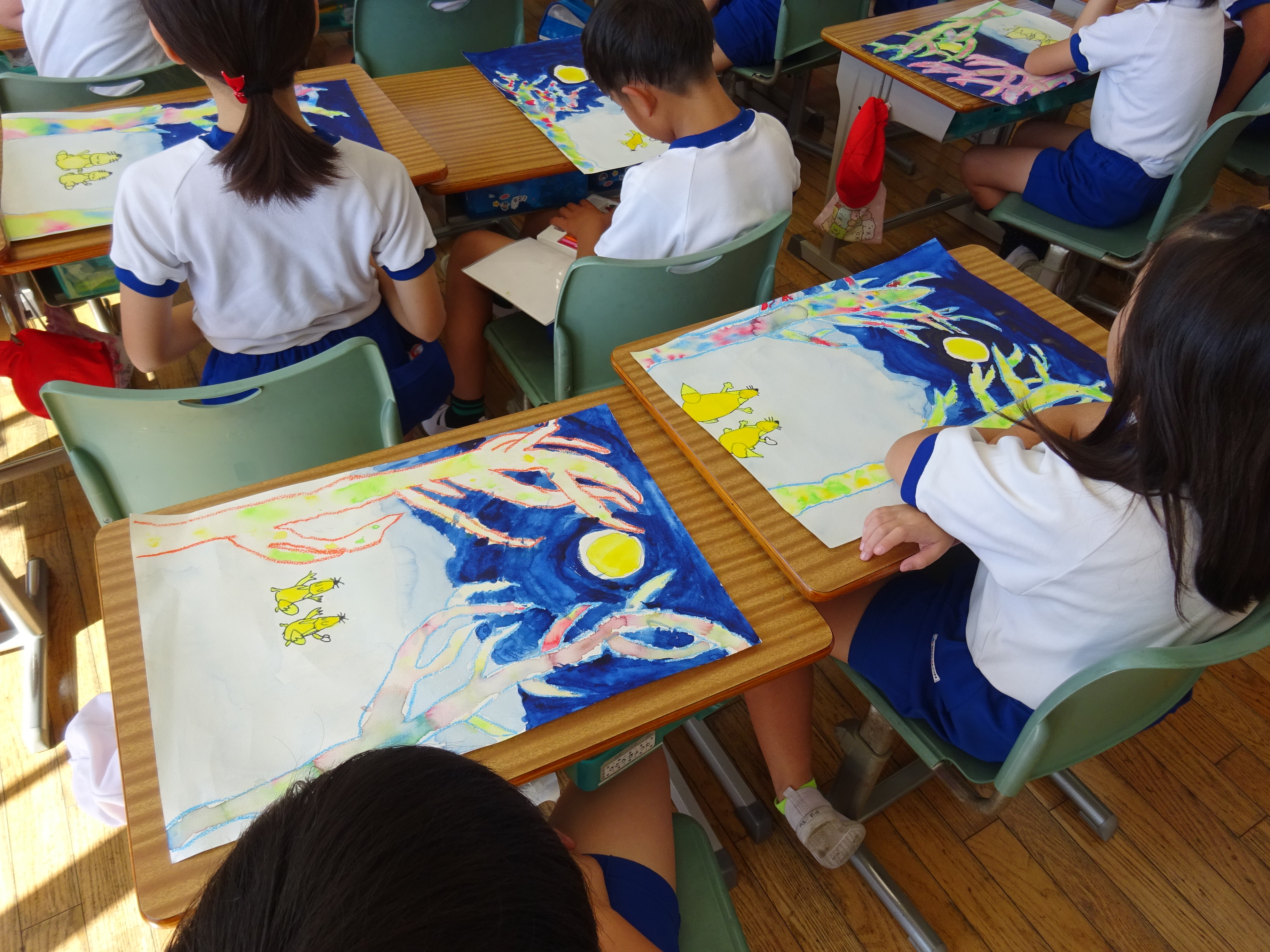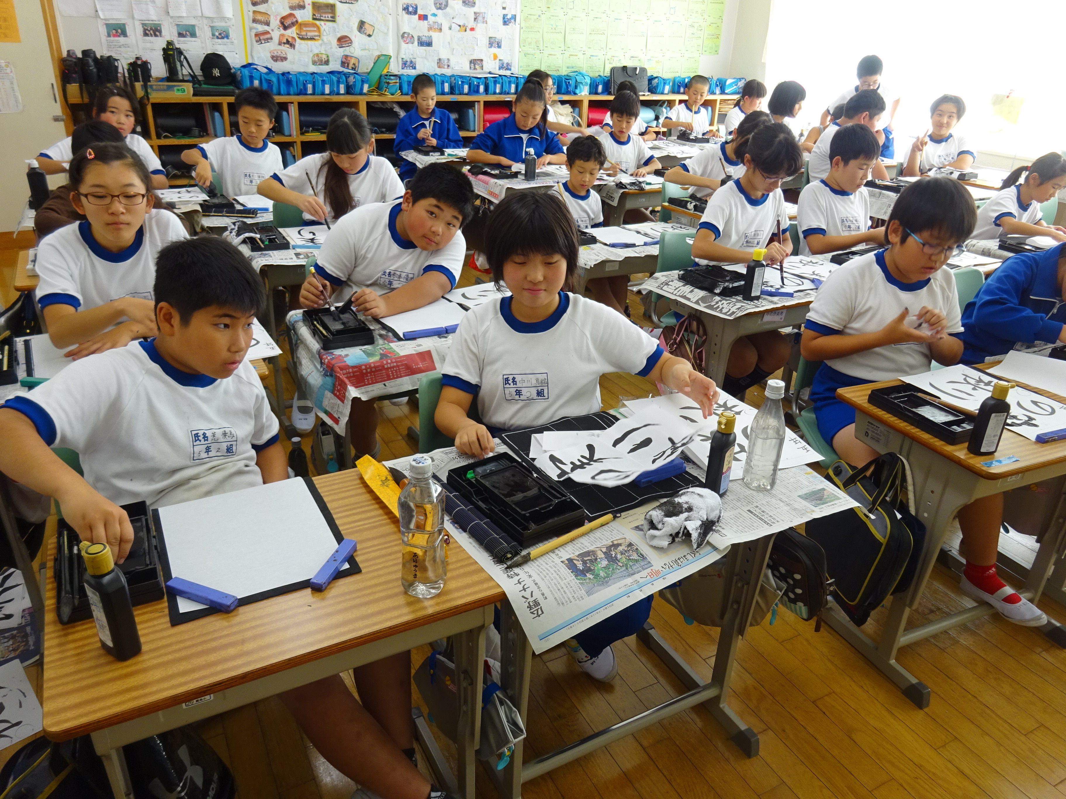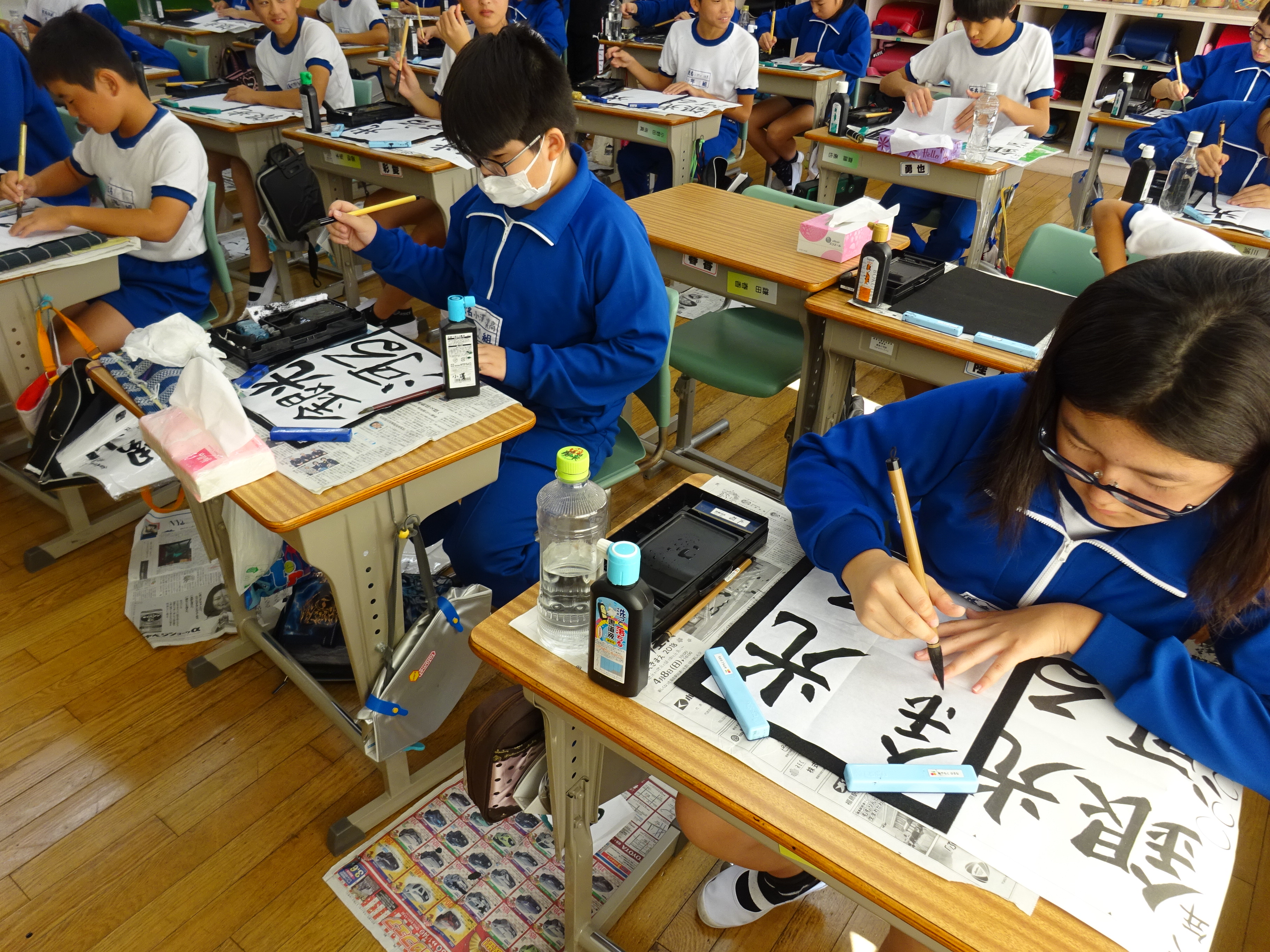そこに出品するために、子どもたちは毎日図工や書写などの時間を使って作品に取り組んでいます。