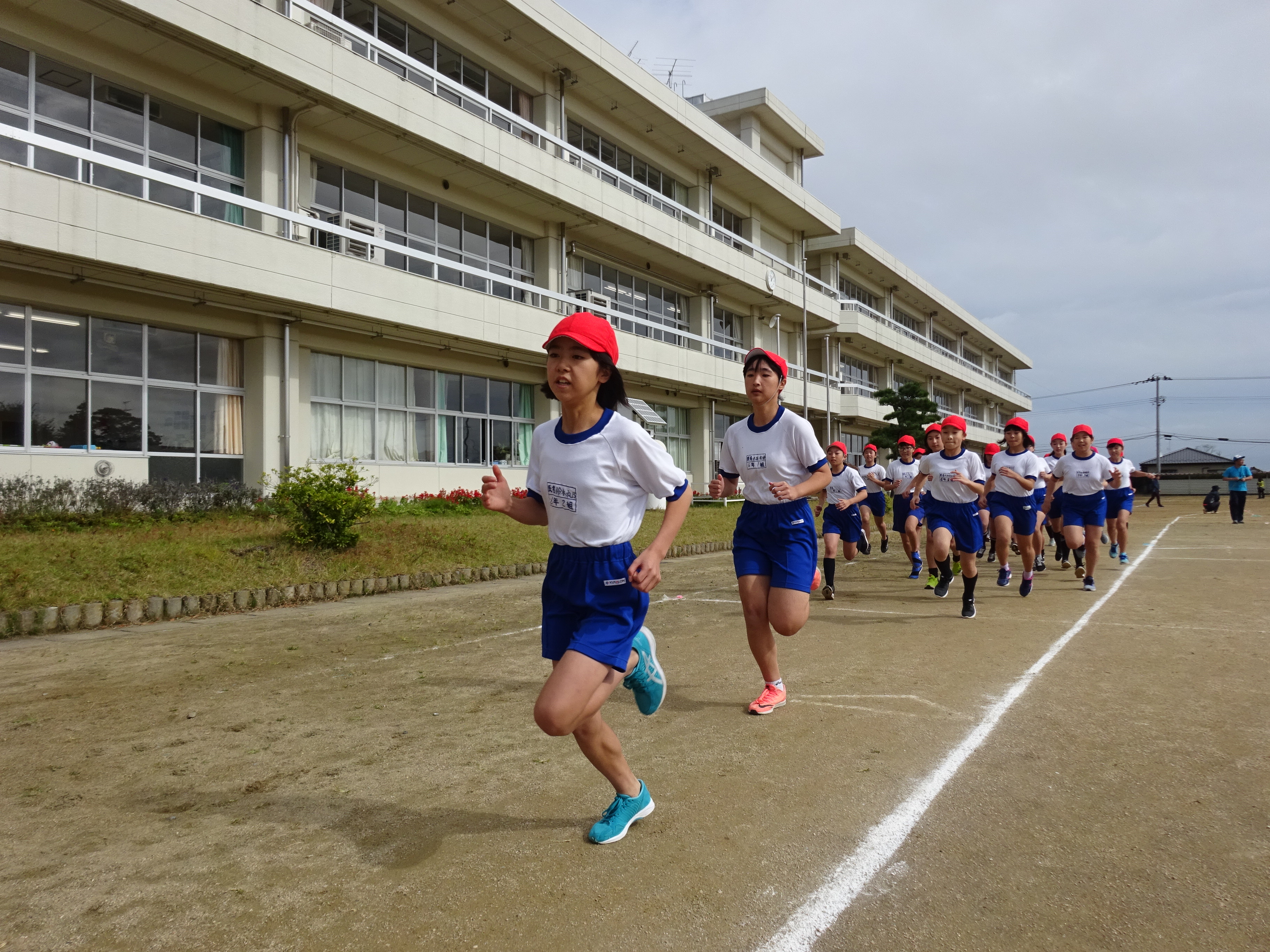 朝方まで雨が降っていたため実施が危ぶまれましたが、雨も上がって無事に校内マラソン大会を行うことができました。