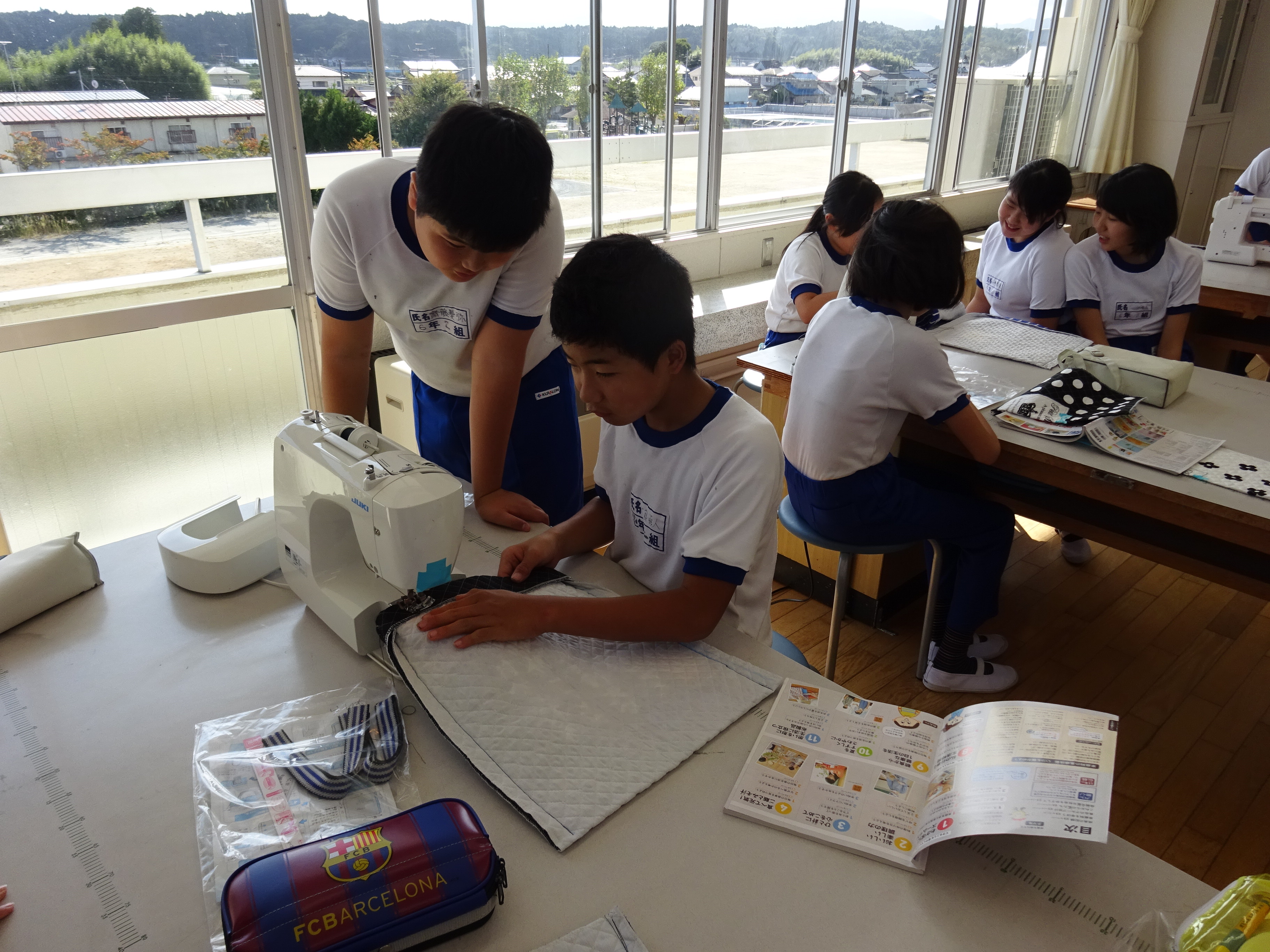 6年生は家庭科の時間に、生活に役立つ布製品をつくっていて、トートバッグに取り組んでいます。