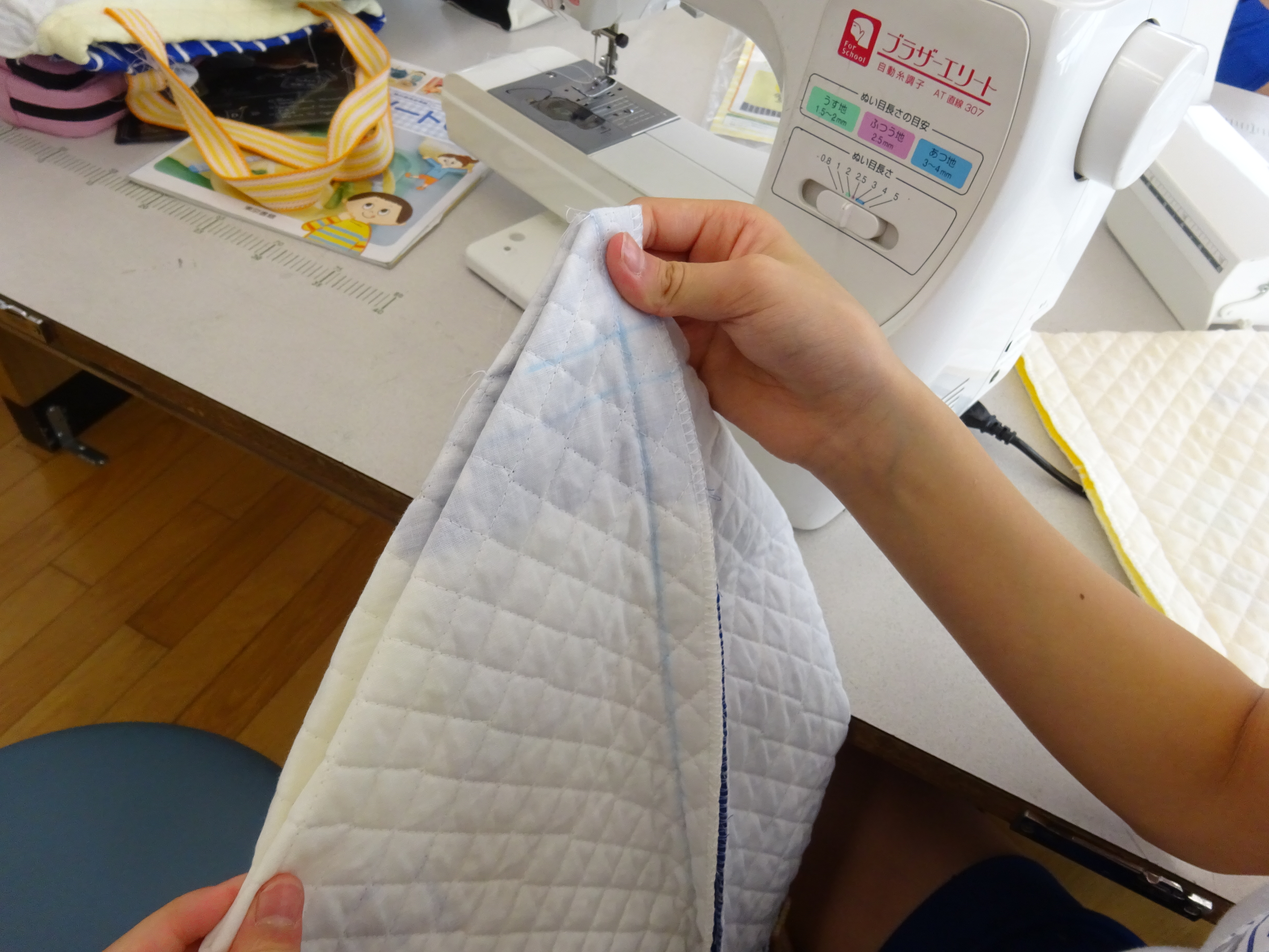 今日は、ミシンを使って袋状にするために周囲を縫ったり、取っ手を付けたりしました。