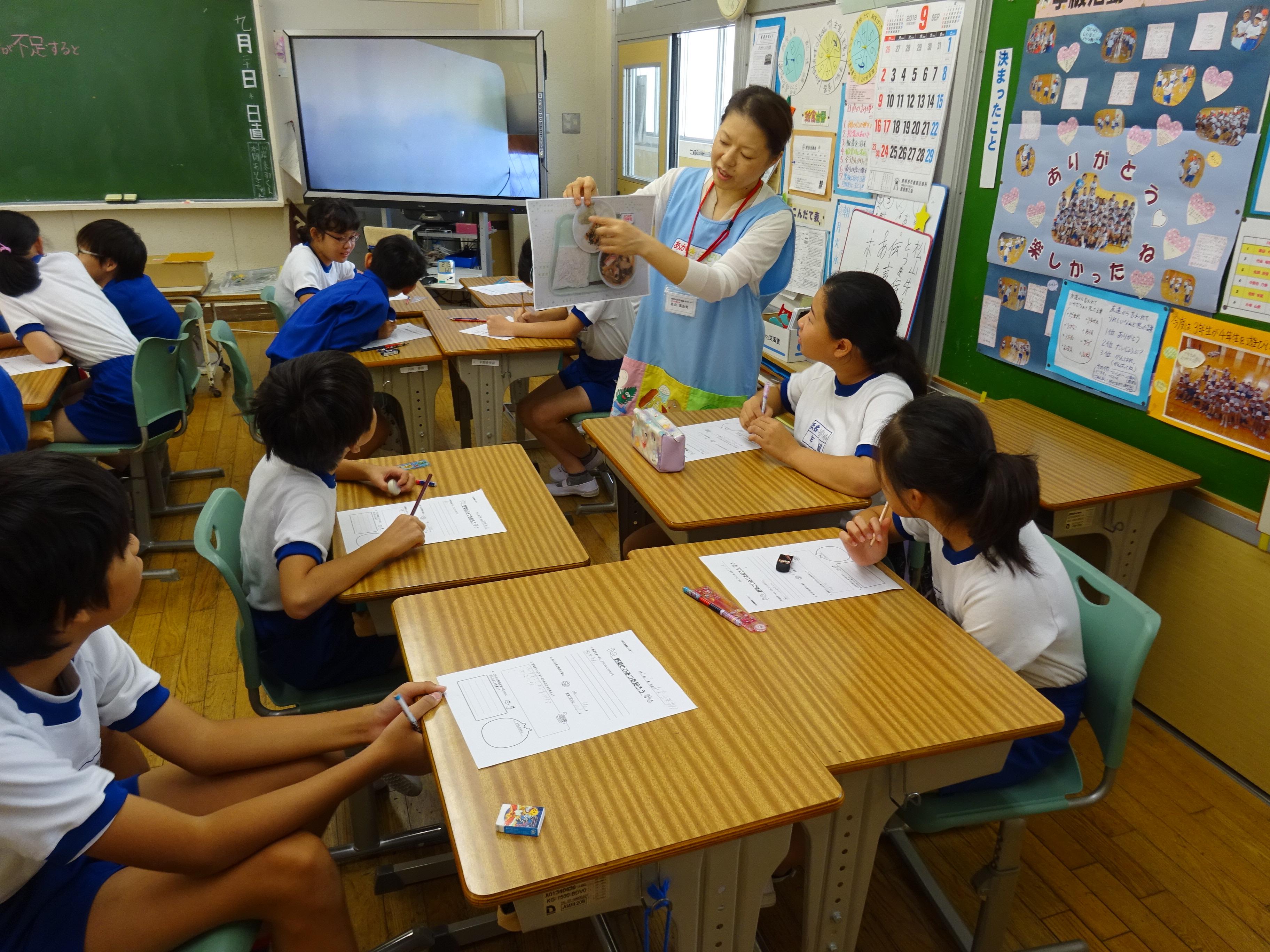 給食センターの栄養士の畠山先生にお越しいただき、4年生の各学級で食育の授業を行いました。