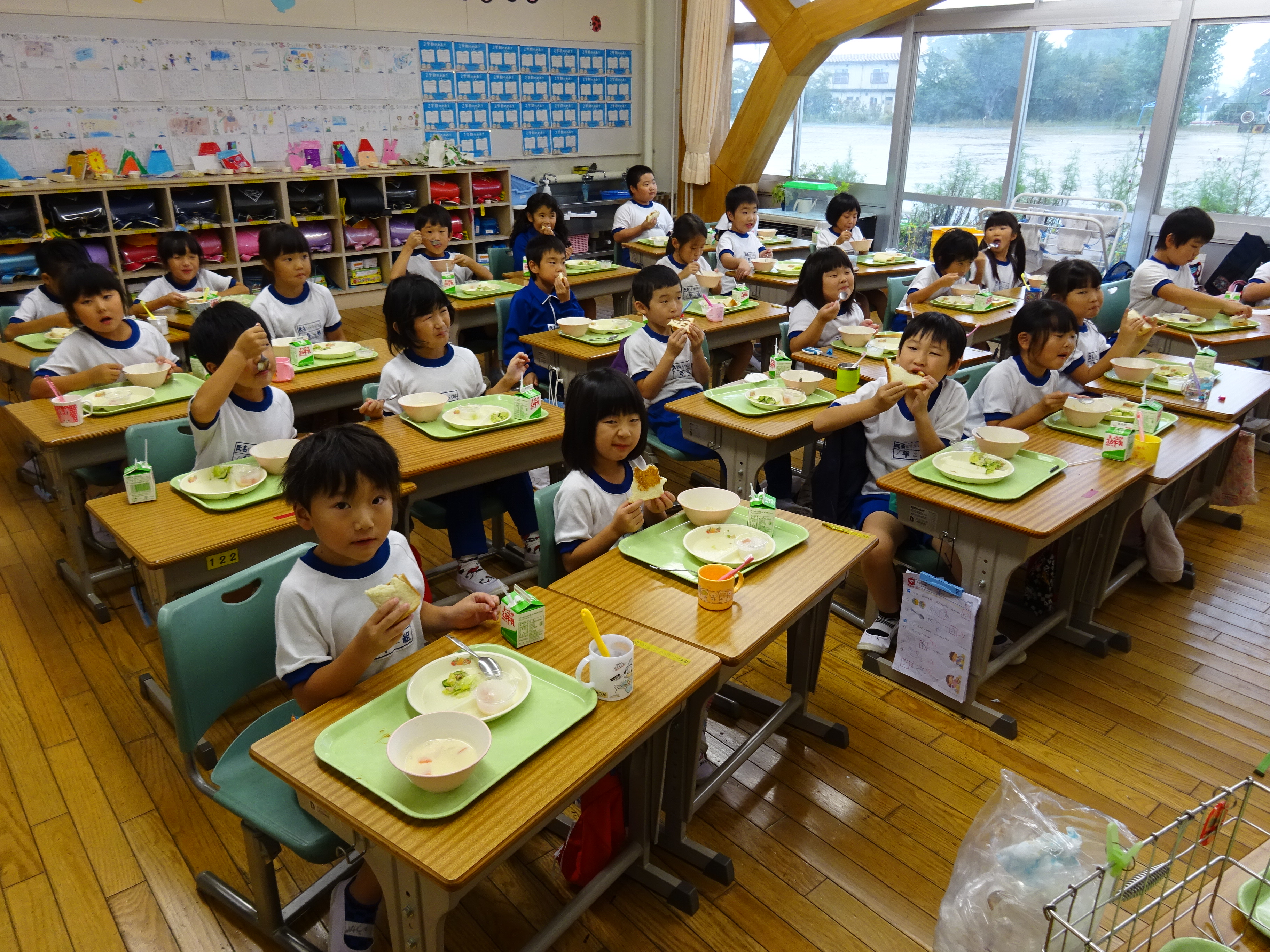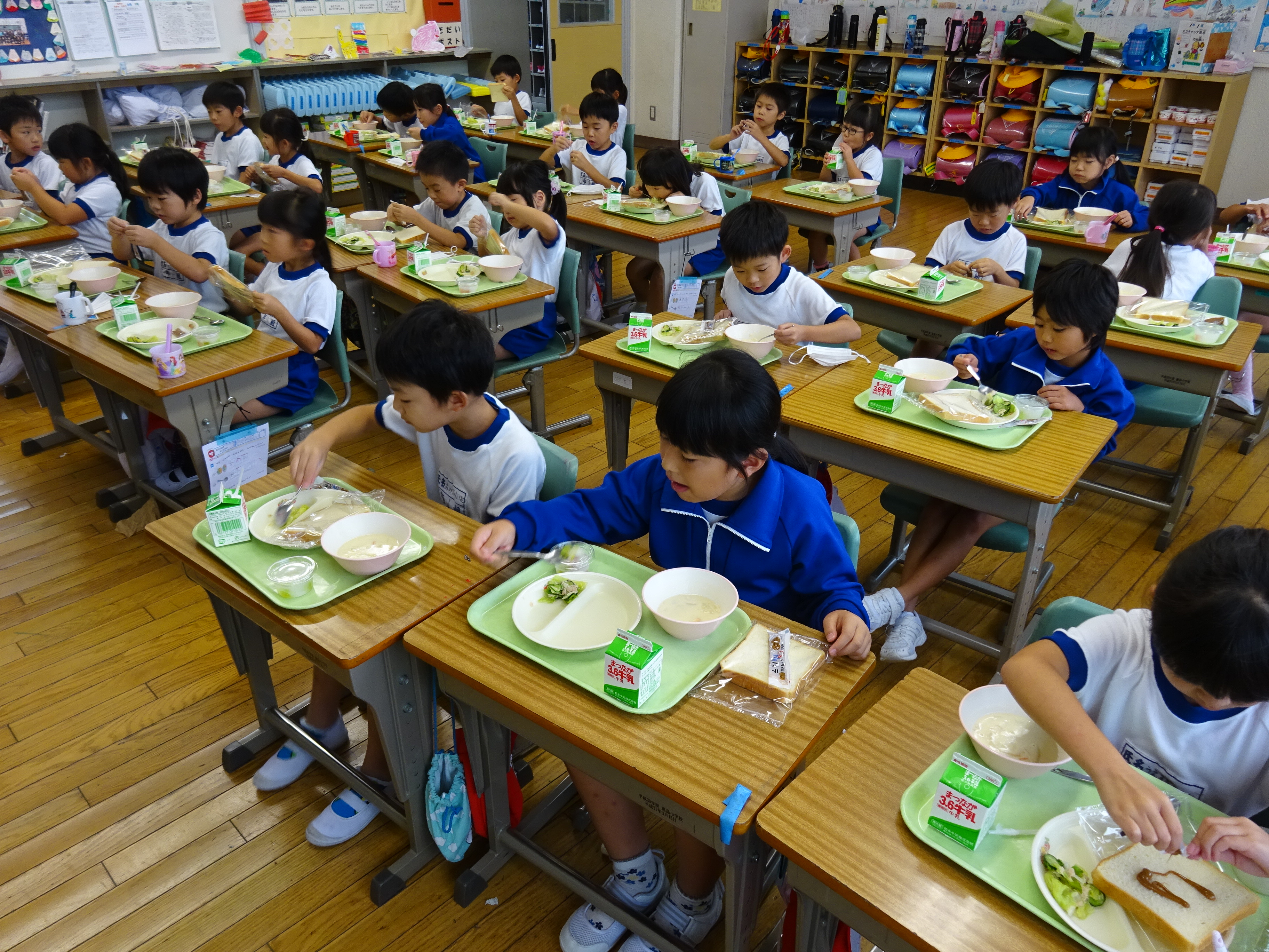 普段よりもにこにこ笑顔で給食を食べている子どもたちの姿が見られました。