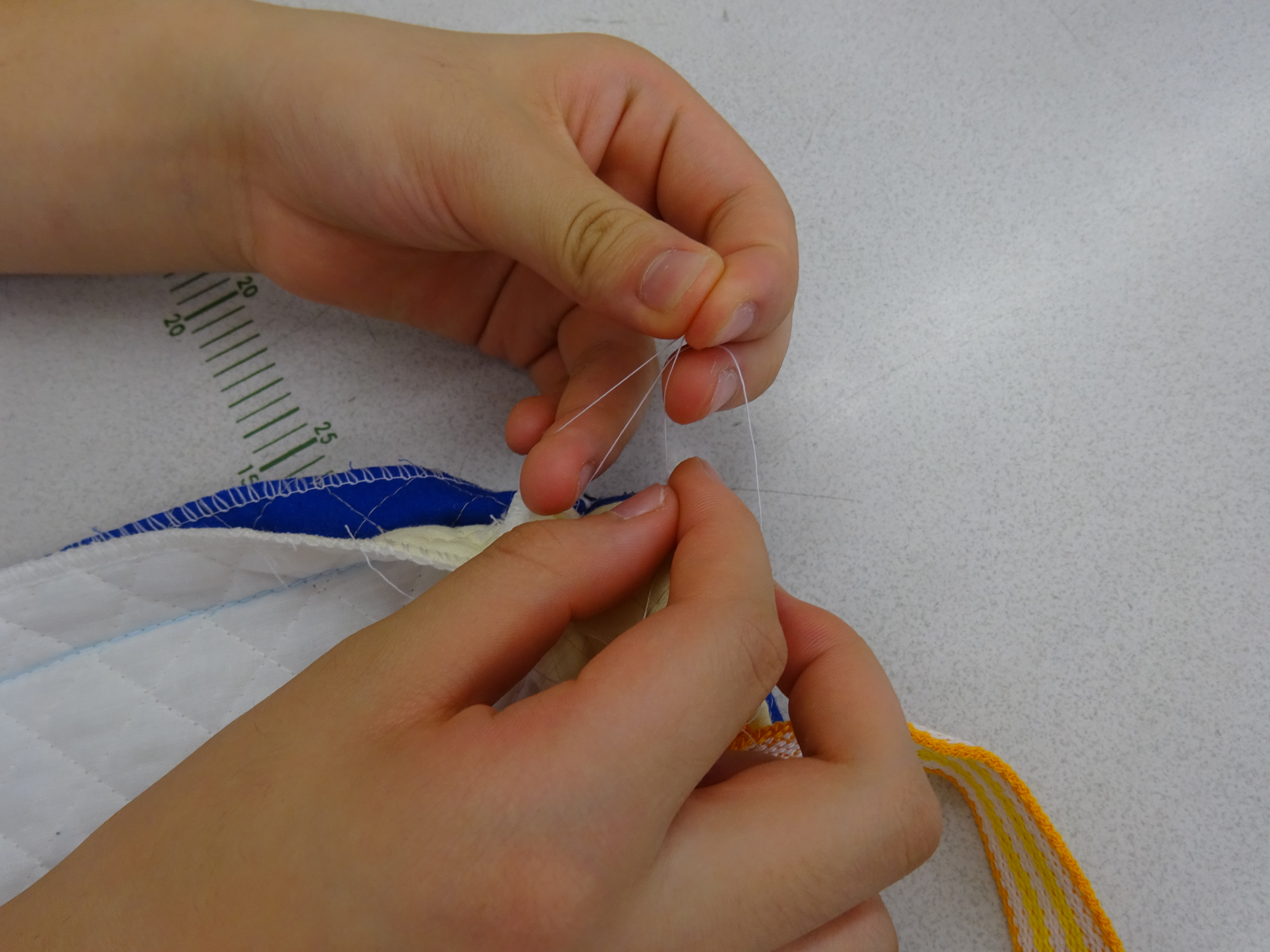 久しぶりのミシンでしたが、慎重に丁寧に仕上げていました。
