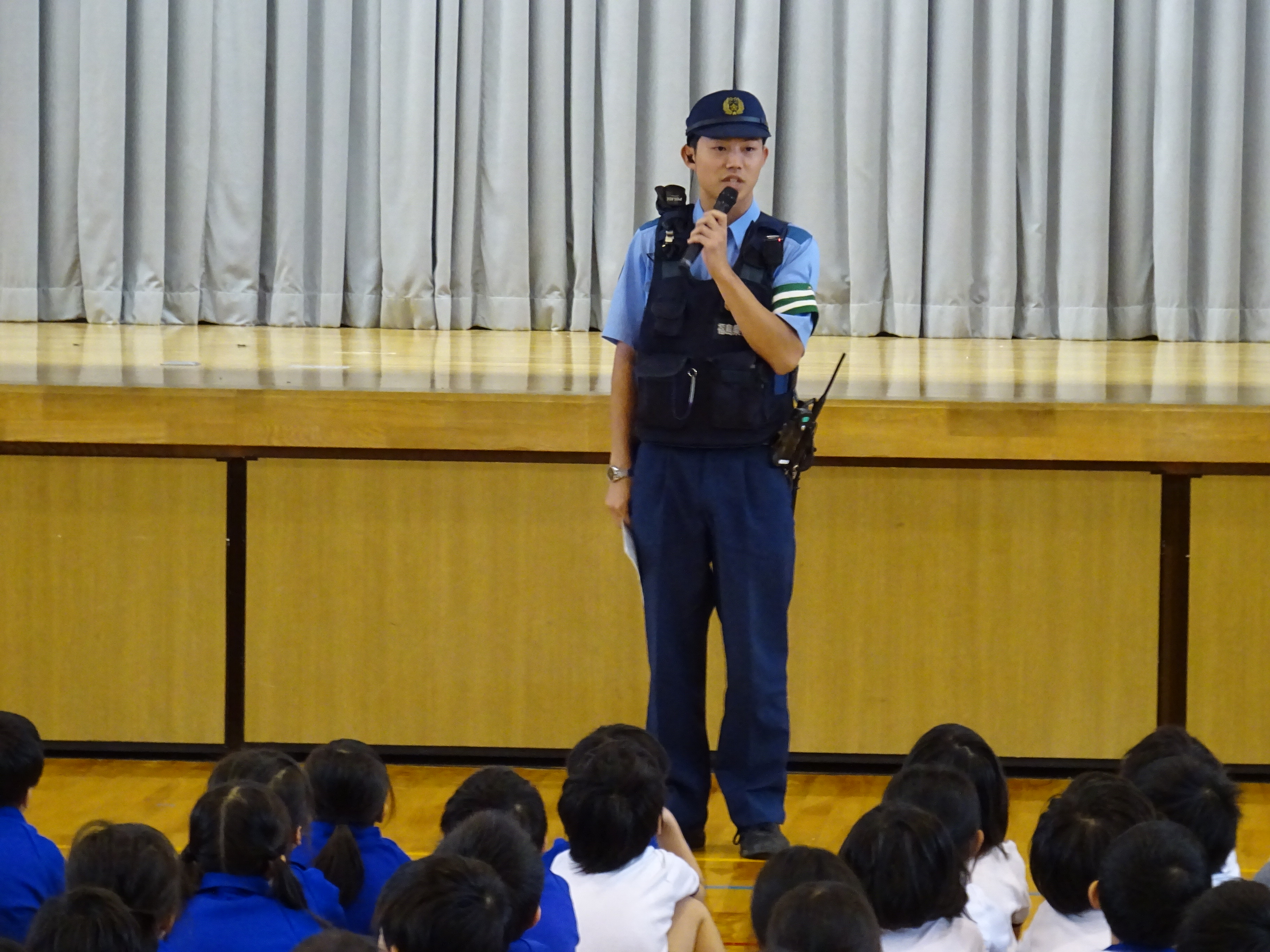 鹿島駐在所の山口さんにお越しいただき、交通教室を行いました。