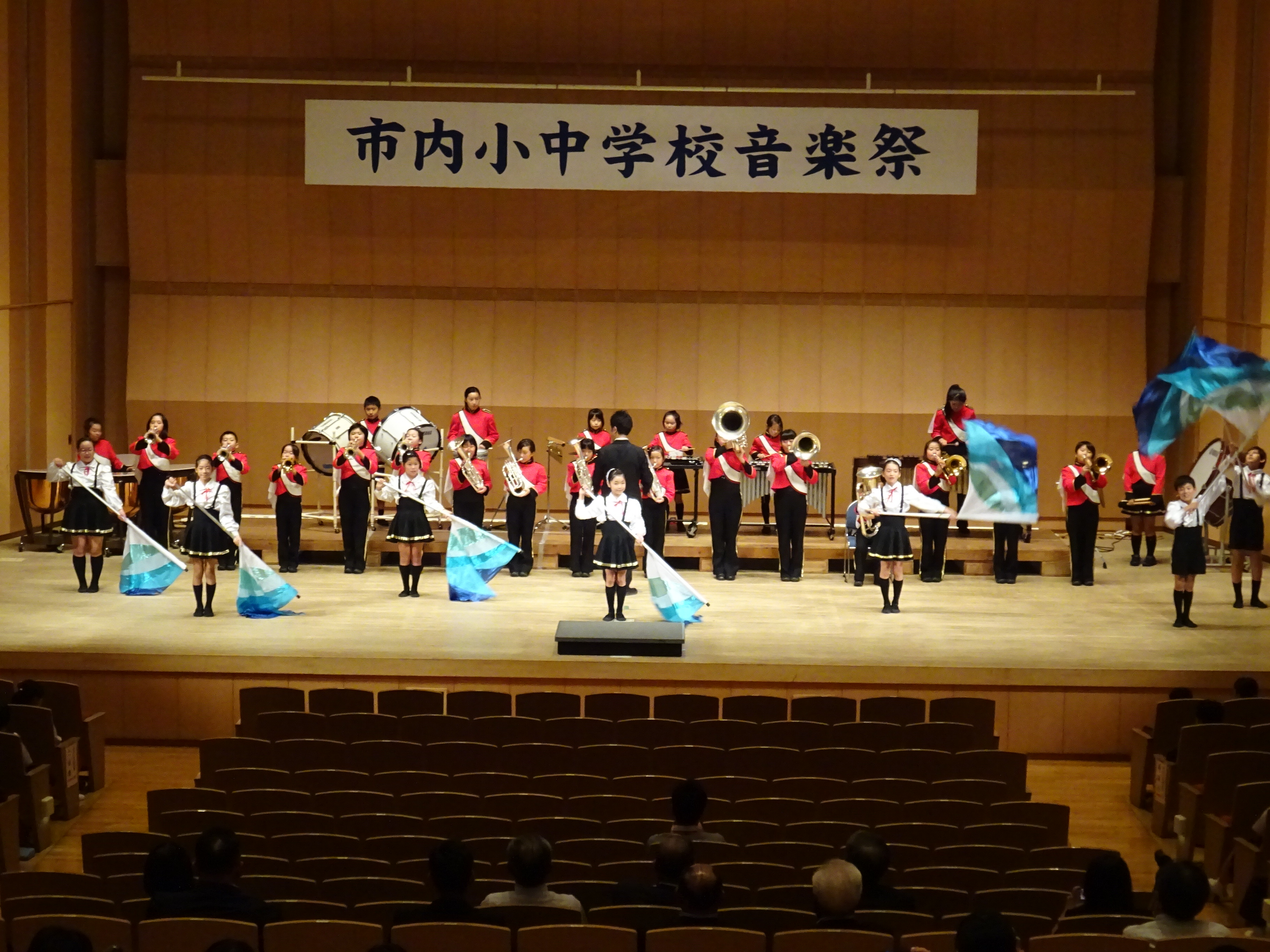 5年生は合唱「糸」と合奏「ダンシング・ヒーロー」を、吹奏楽部とバトン部は「千と千尋の神隠しメドレー」を発表しました。