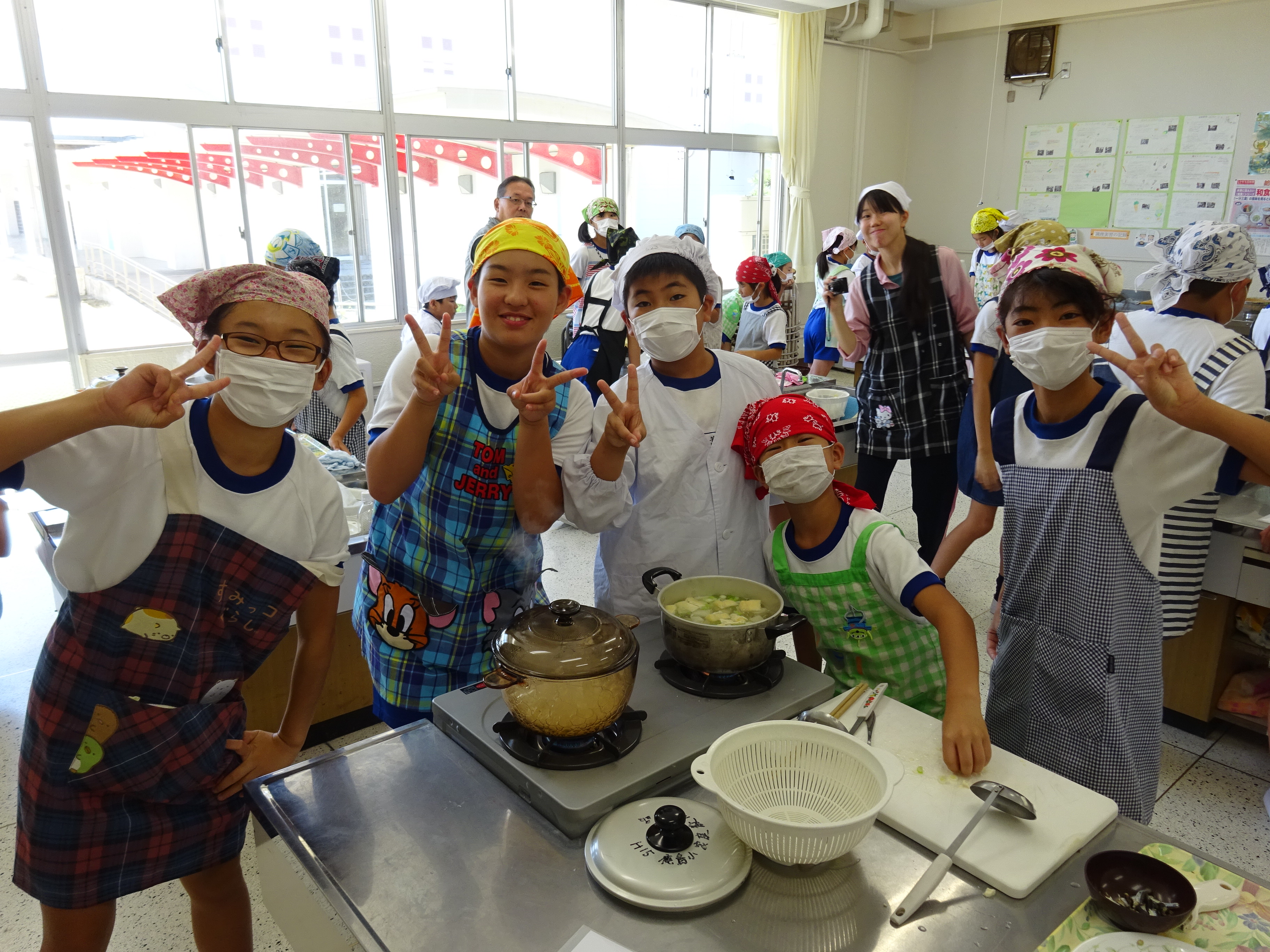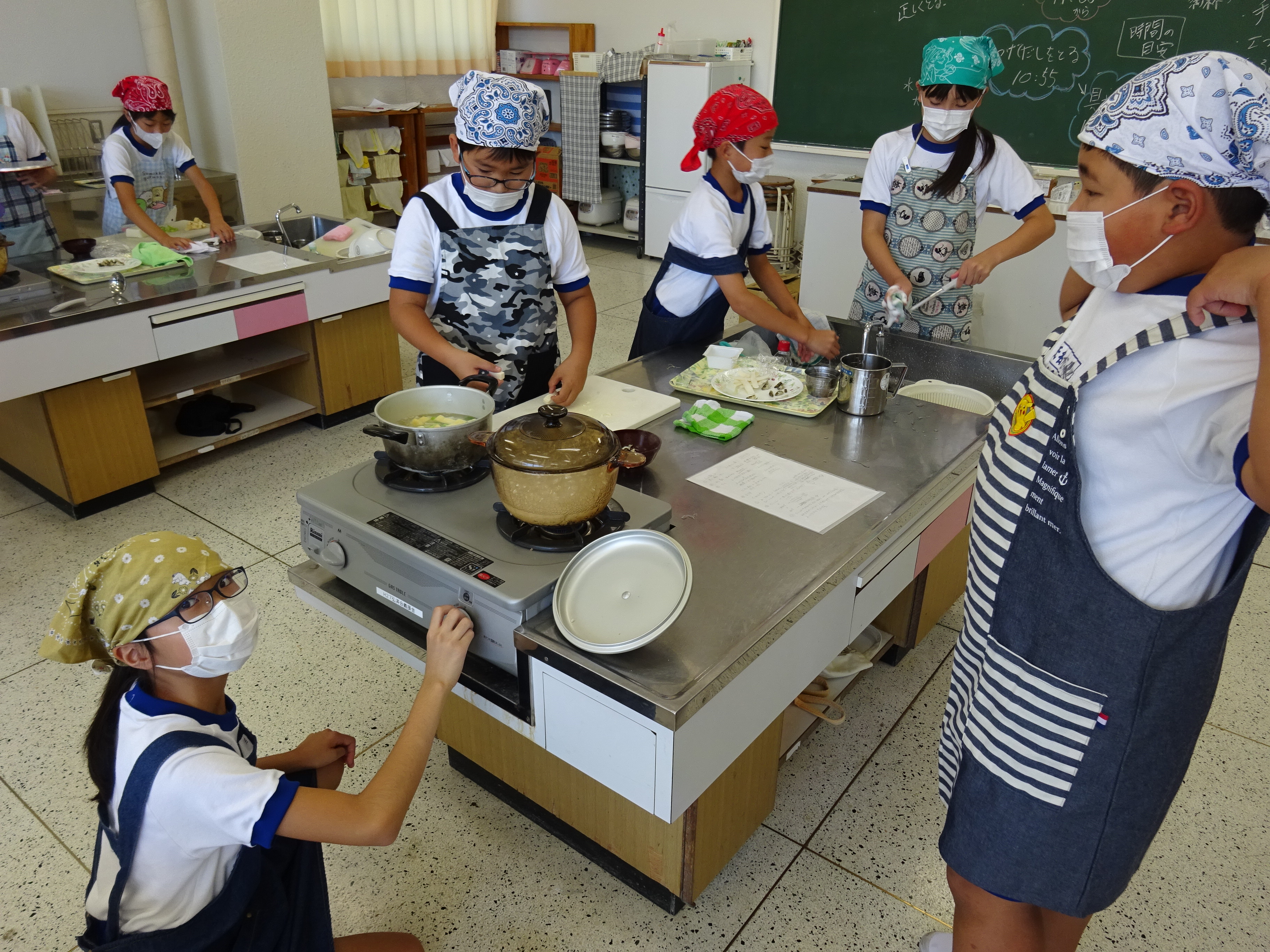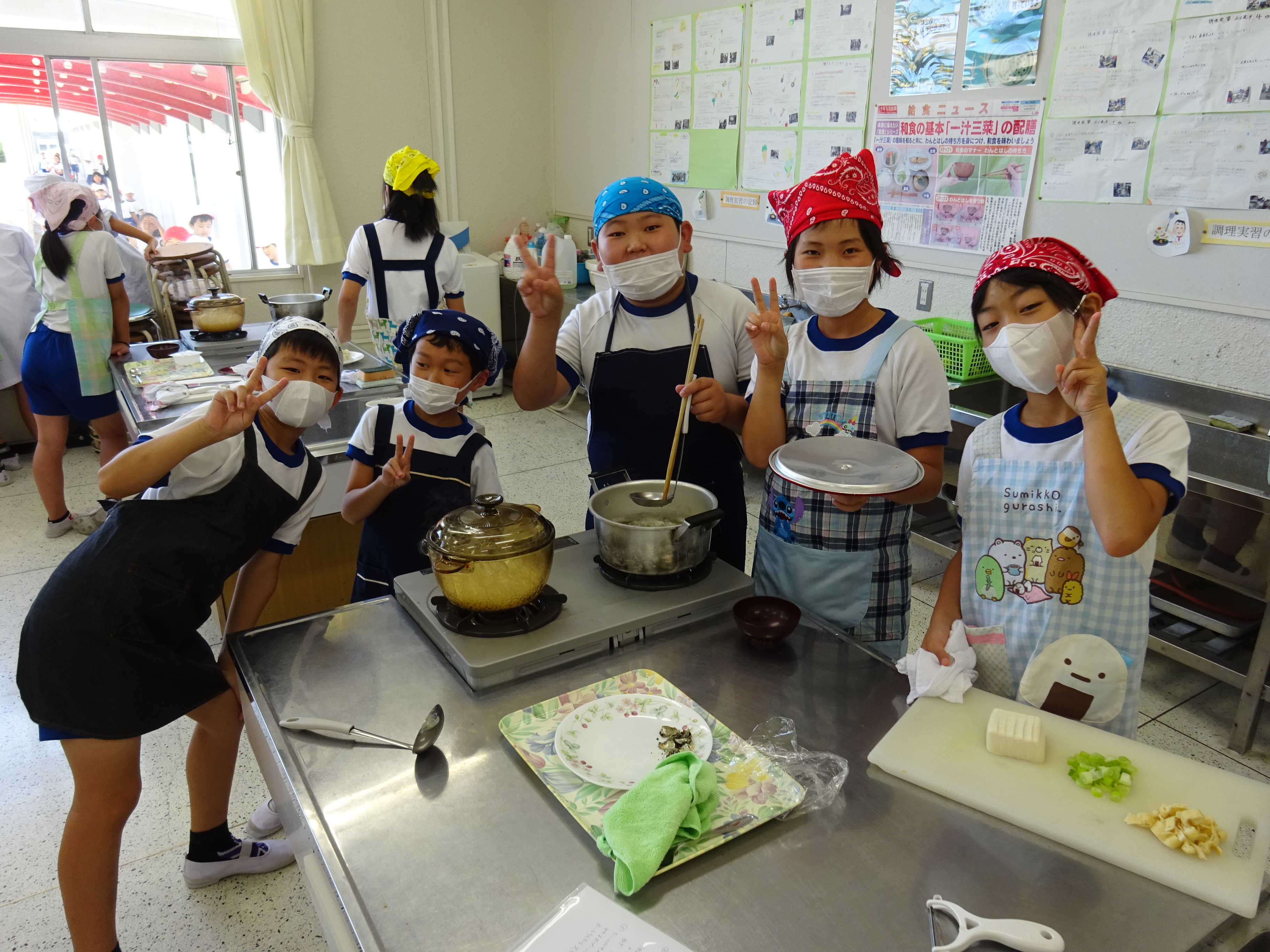 5年生は、「食べて元気、ご飯とみそ汁」という学習をしていますが、今日は調理実習に取り組みました。
